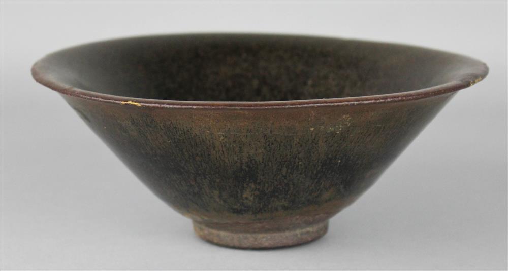 Superb example of a conical Jian ware hare’s fur bowl from the Southern Song Dynasty. One of the most well made examples of the Song Dynasty. 17 cm wide.
