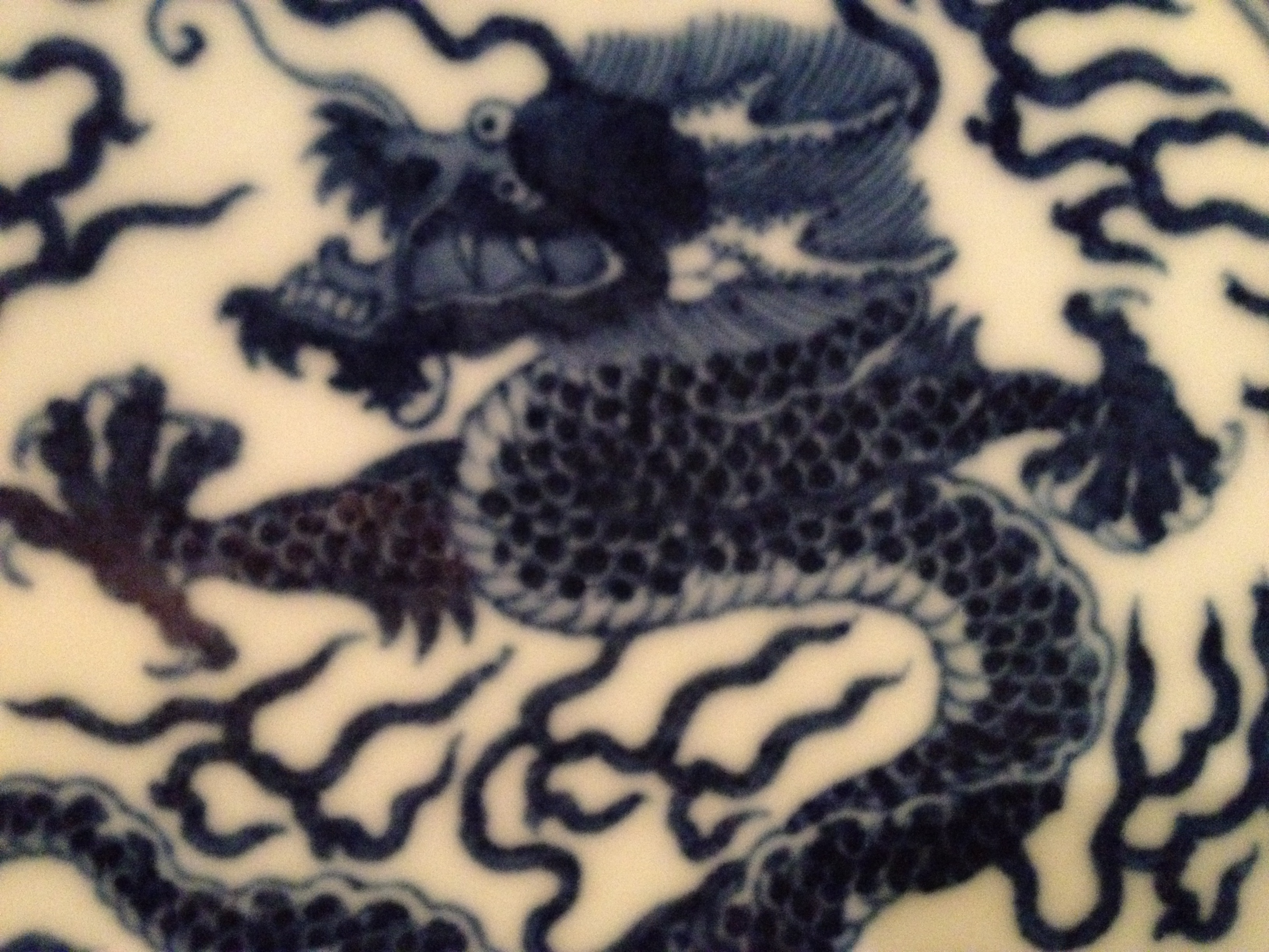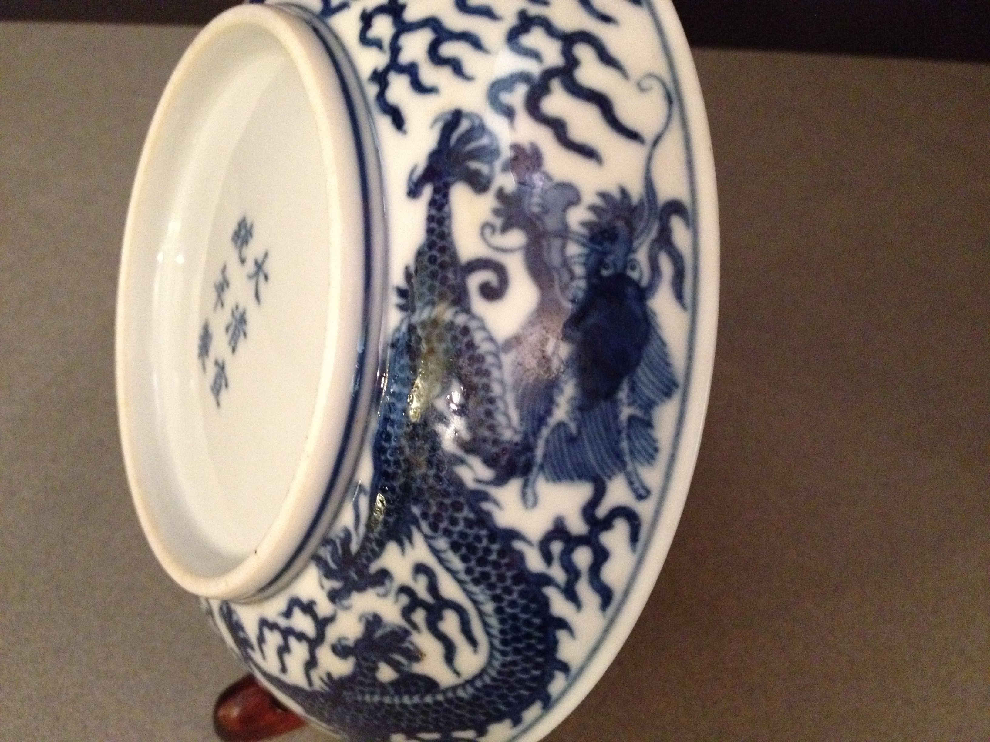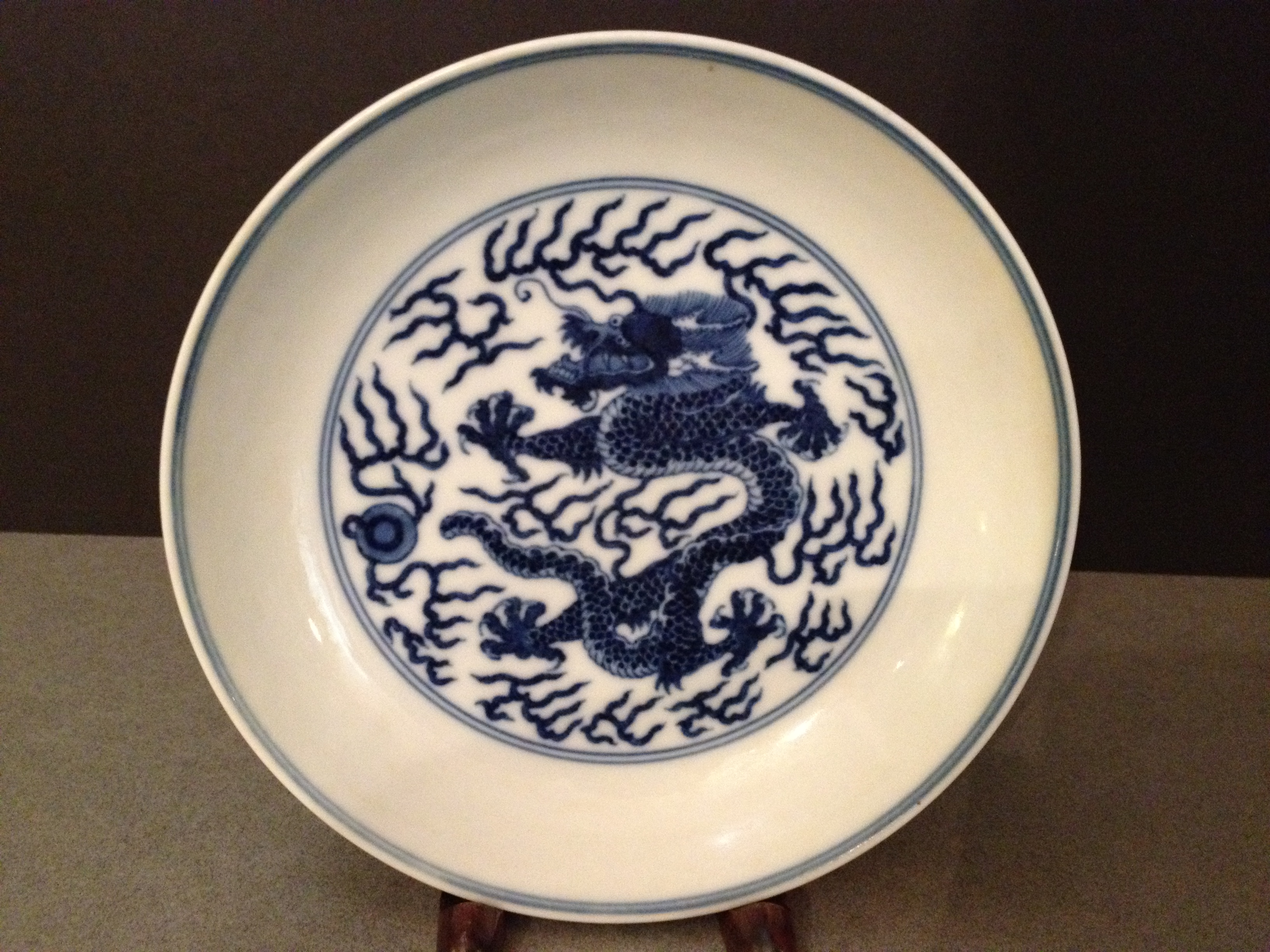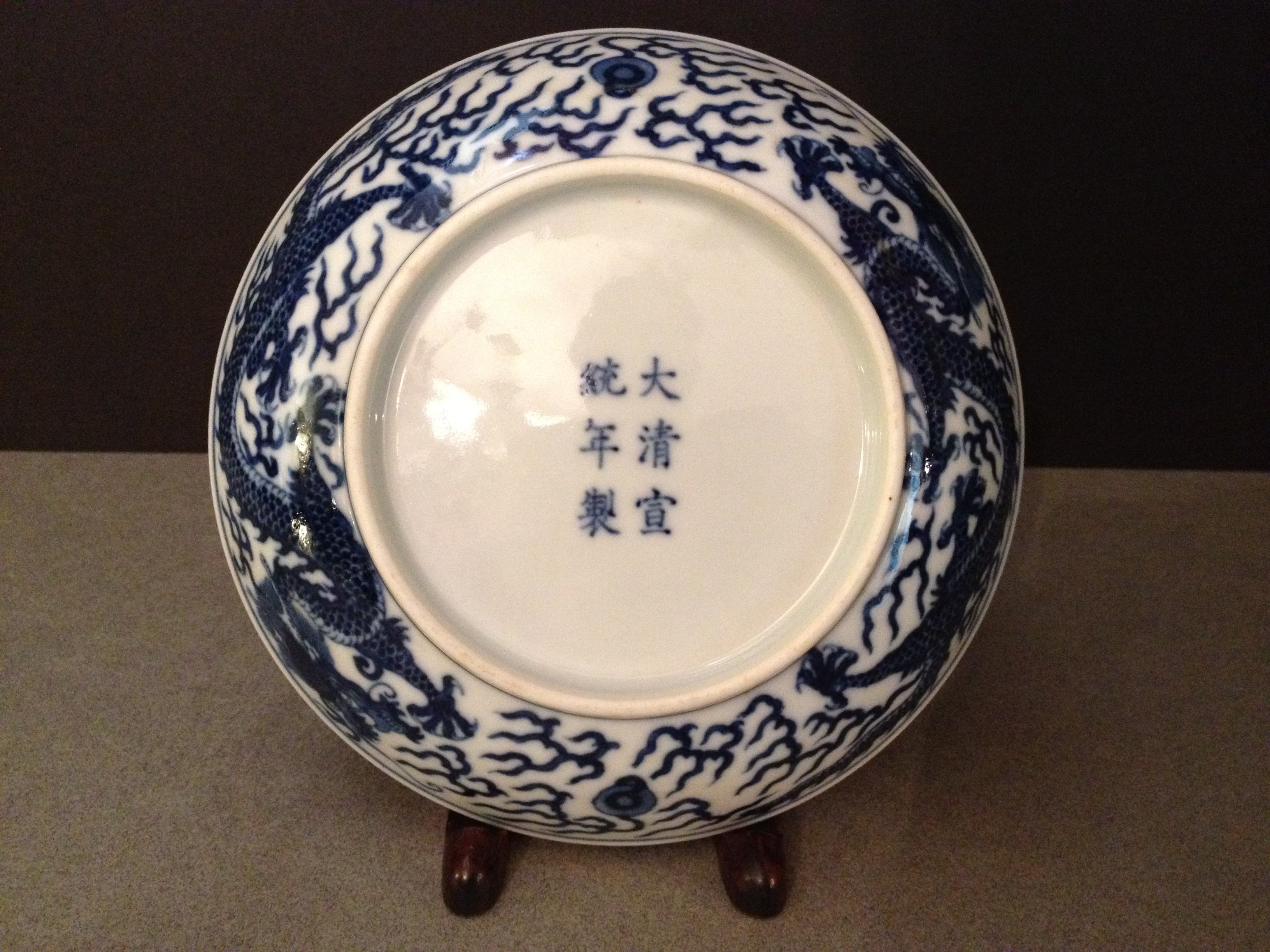 The last dragon! Xuantong Imperial Blue & White Dragon Plate. Xuantong Mark & Period. 16.5 CM wide