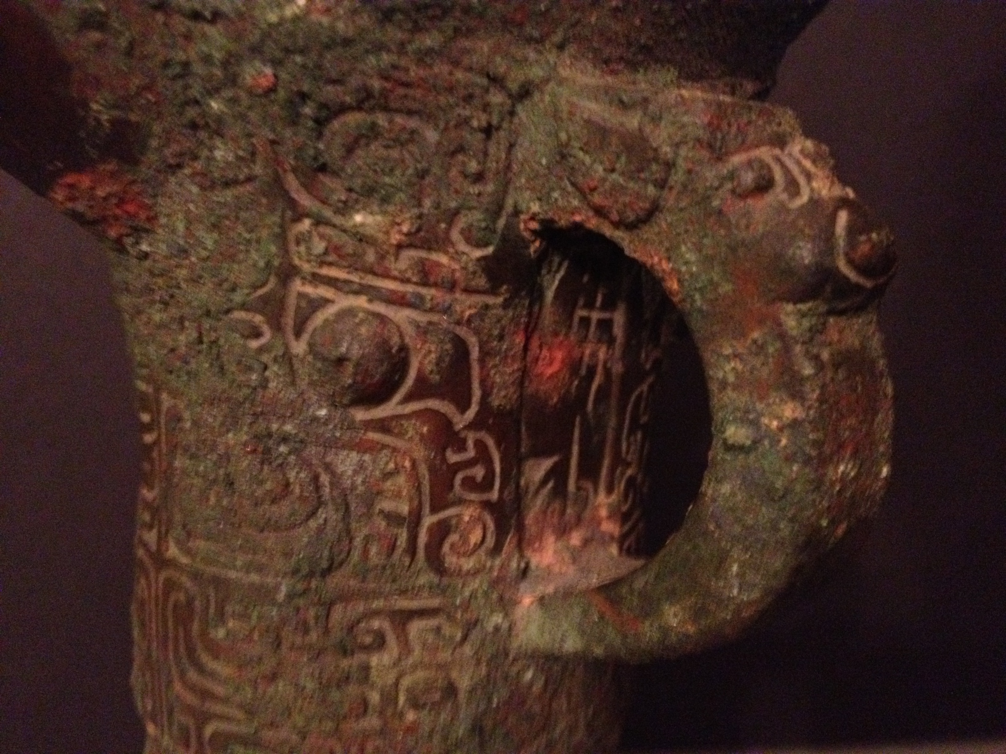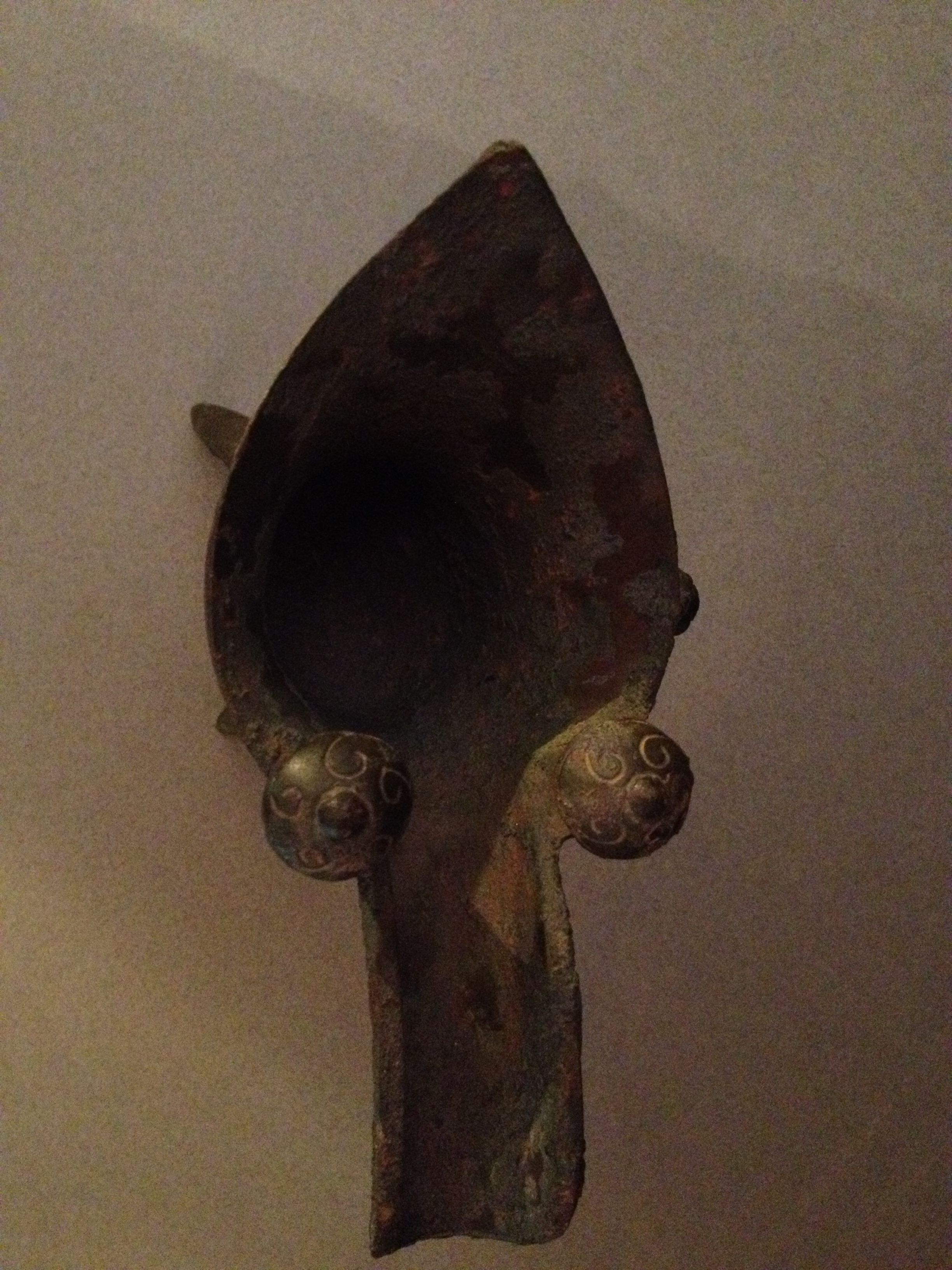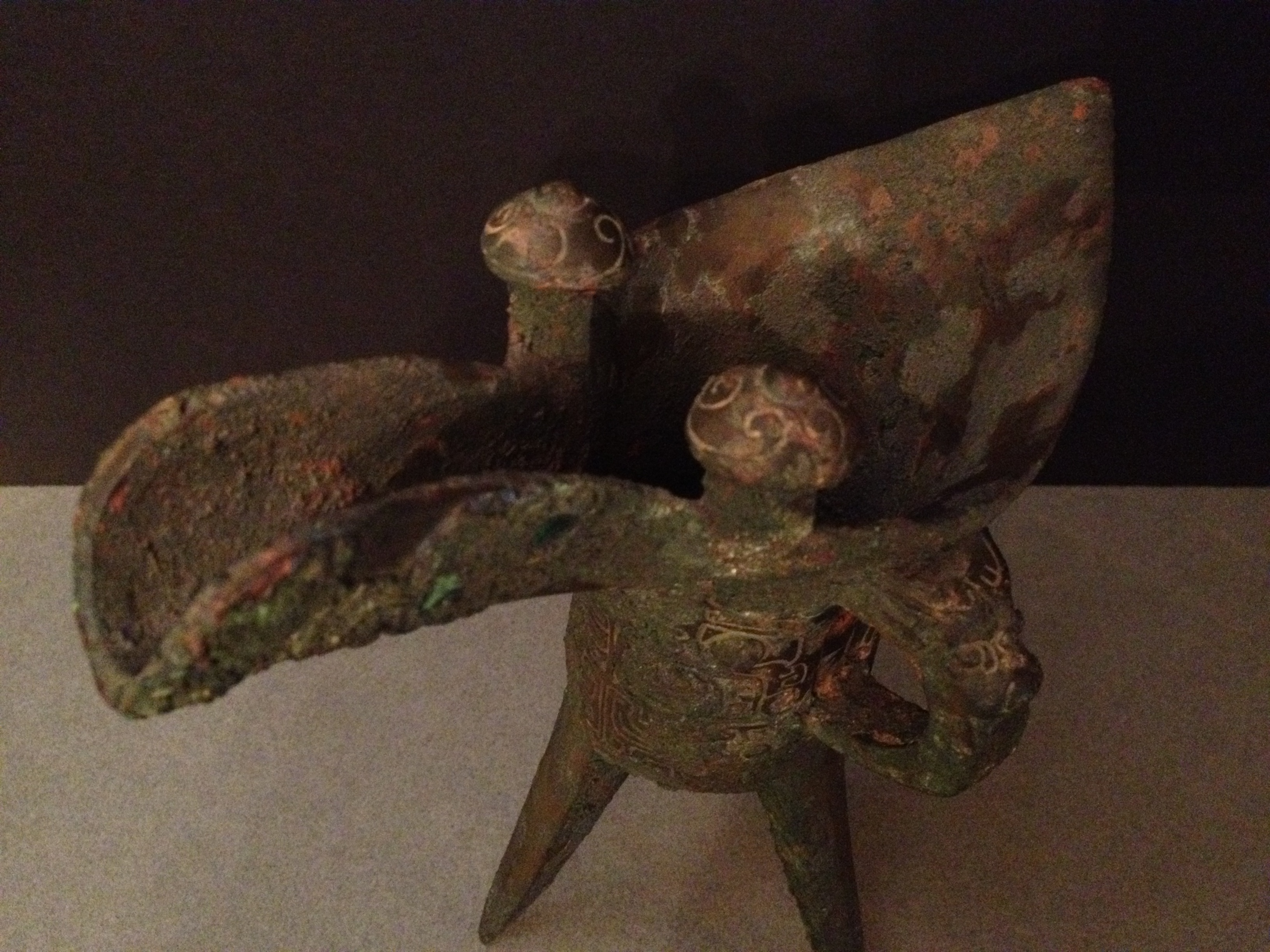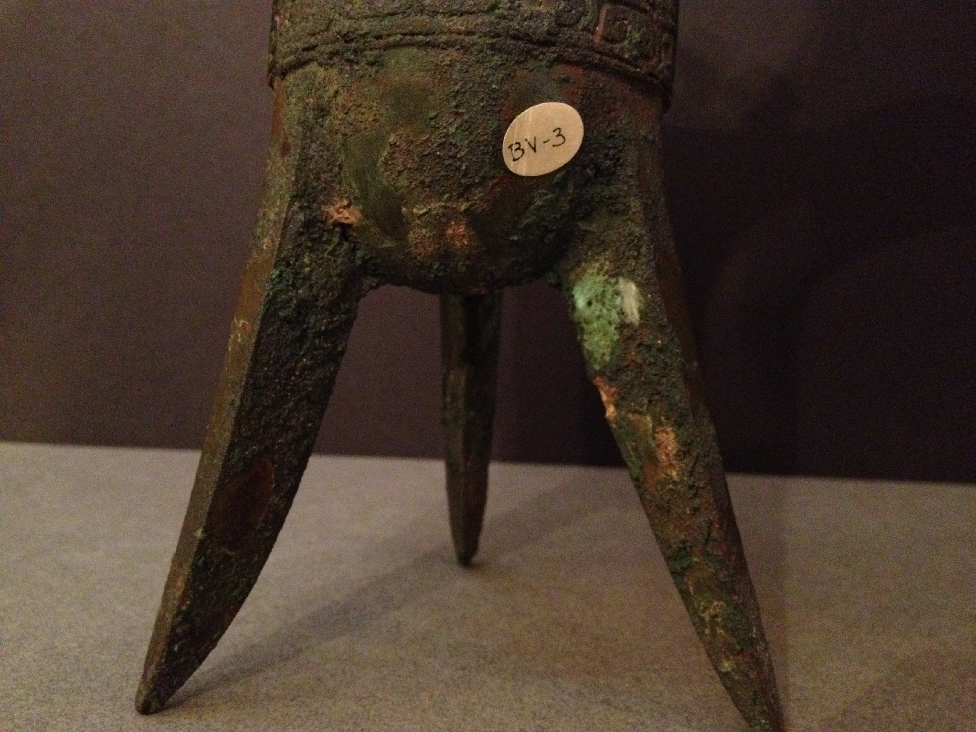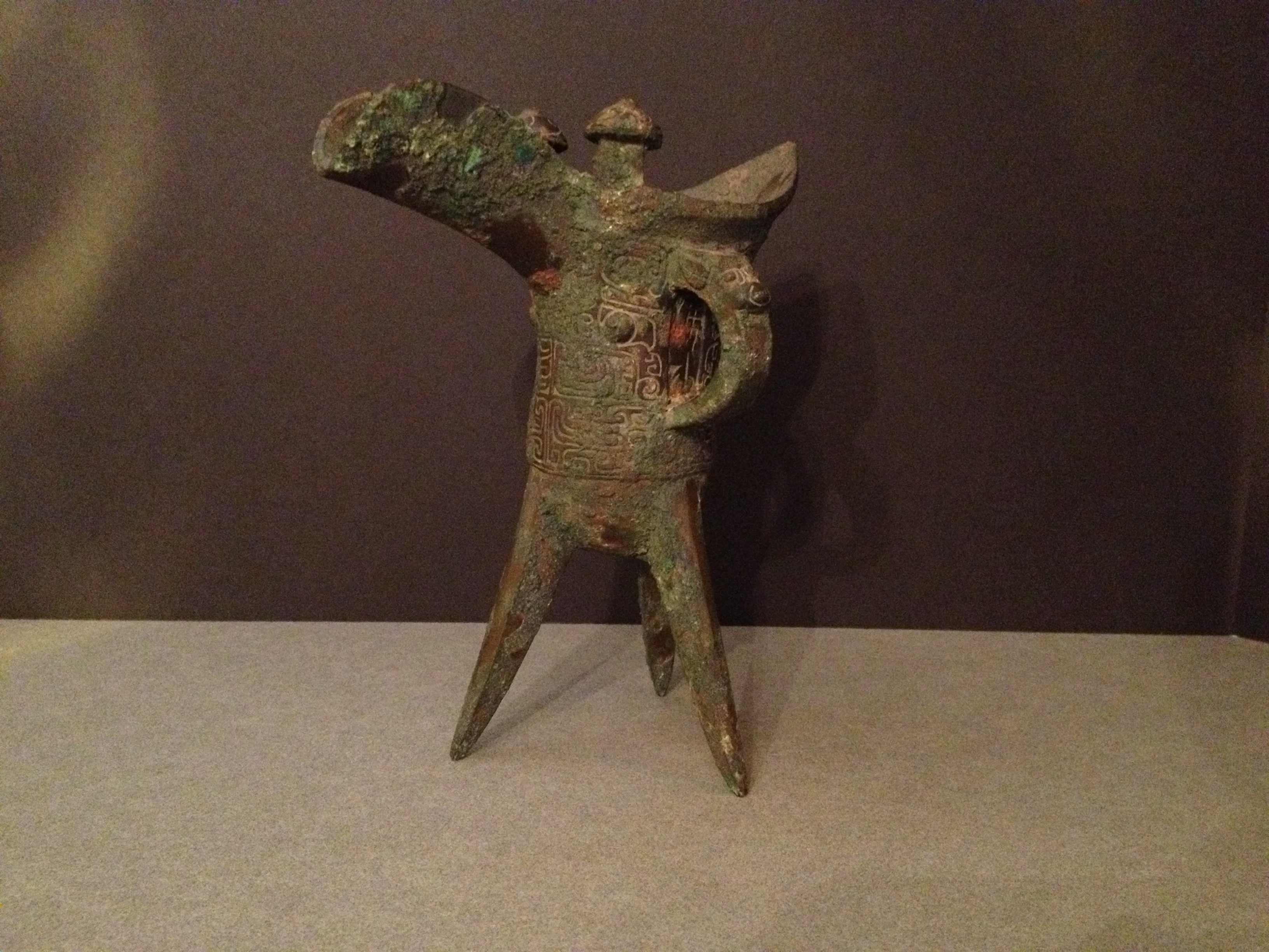Rare Shang Dynasty Bronze Jue. Circa 8-10th century BC. Taotie decoration. Archaic inscription under the handle. Ex Mackenzie Walker collection, Washington DC. 20 cm high
