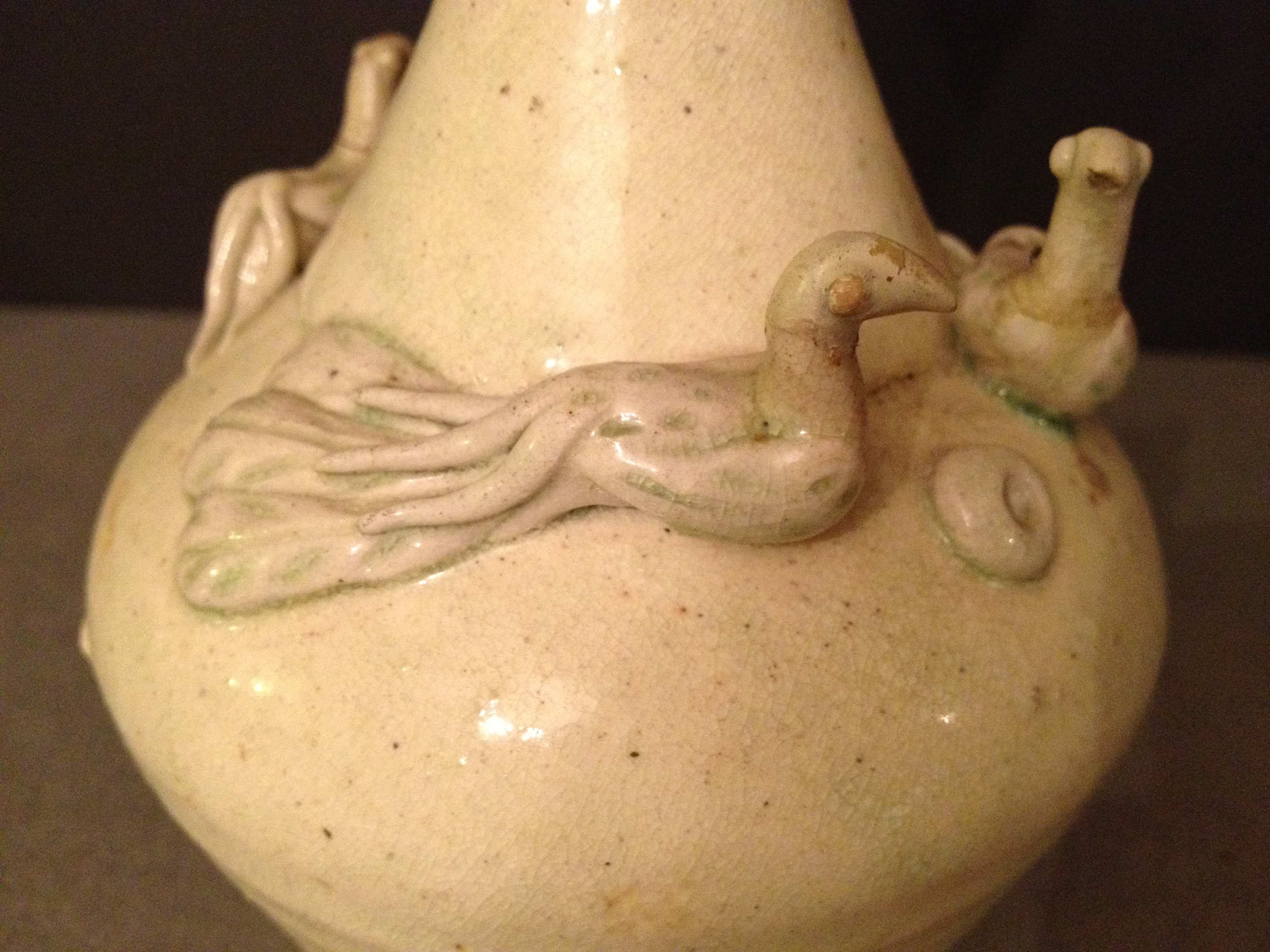 Chinese Five Dynasties Green Glaze Porcelain Vase with Peacock