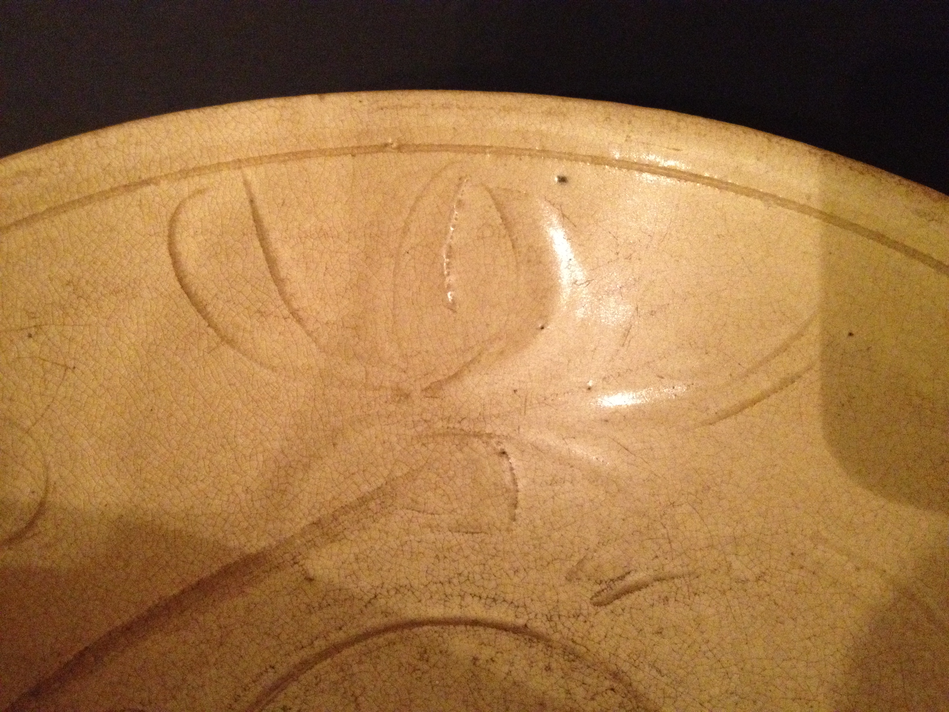 Nicely carved Ding Ware Porcelain Bowl from the Northern Song Dynasty. Nice Ivory tone, pinkish hue when seen through strong light. Perfect condition. 18 cm wide