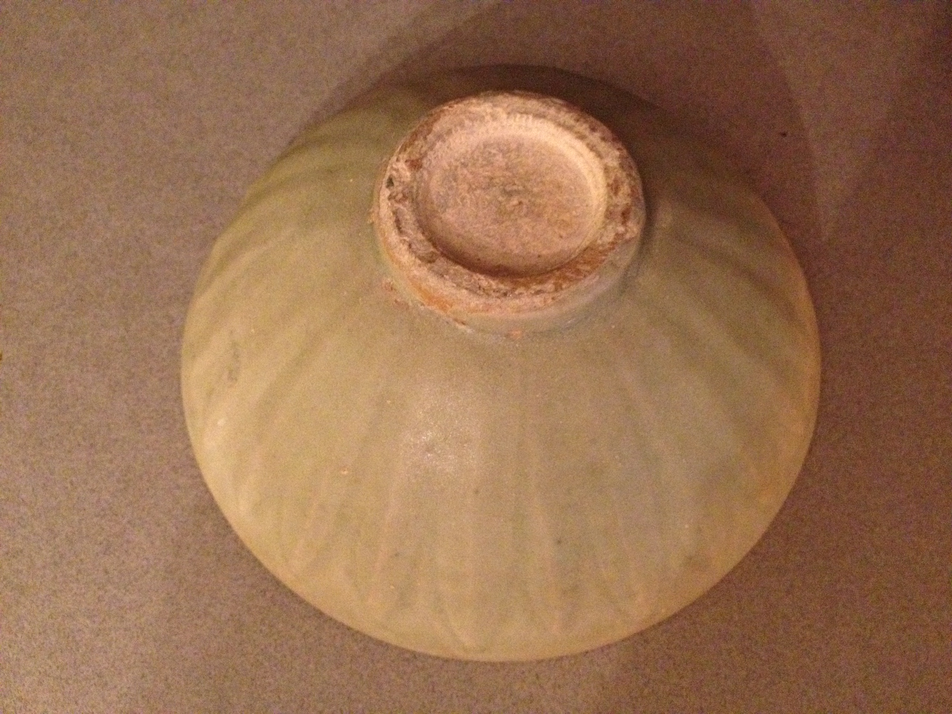 Rare Song Dynasty Longquan Celadon Porcelain Bowl. Carved Lotus outside. Collection of Count Rodolfo Giusti de Marle, Bali, Indonesia. 16 cm wide