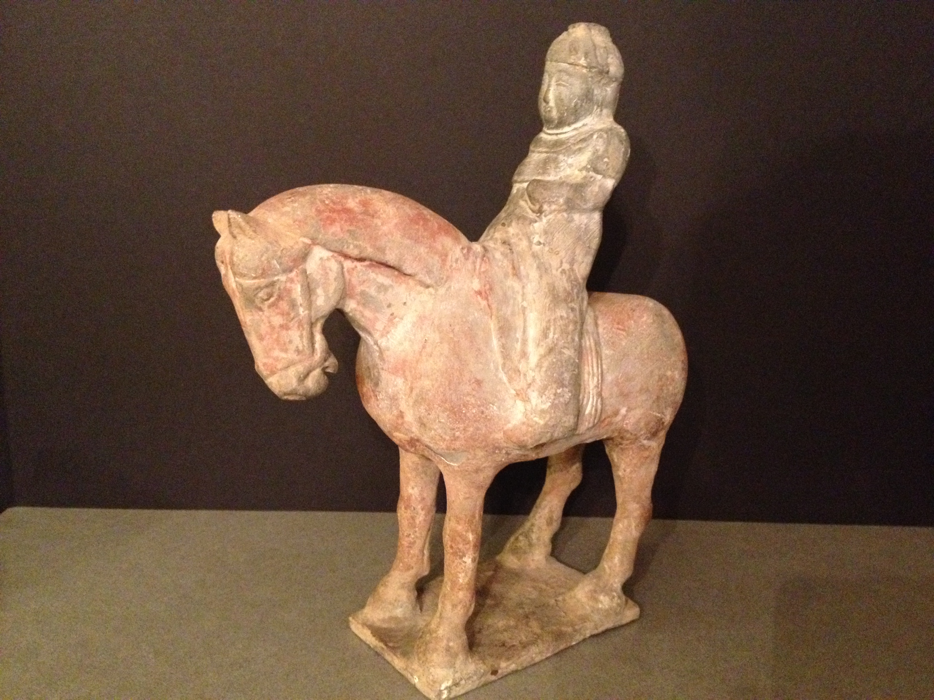 Chinese Six Dynasties to Sui Dynasty Pottery Warrior on Horse. Very Fine and Rare. No apparent repair or damage. 26 cm wide.