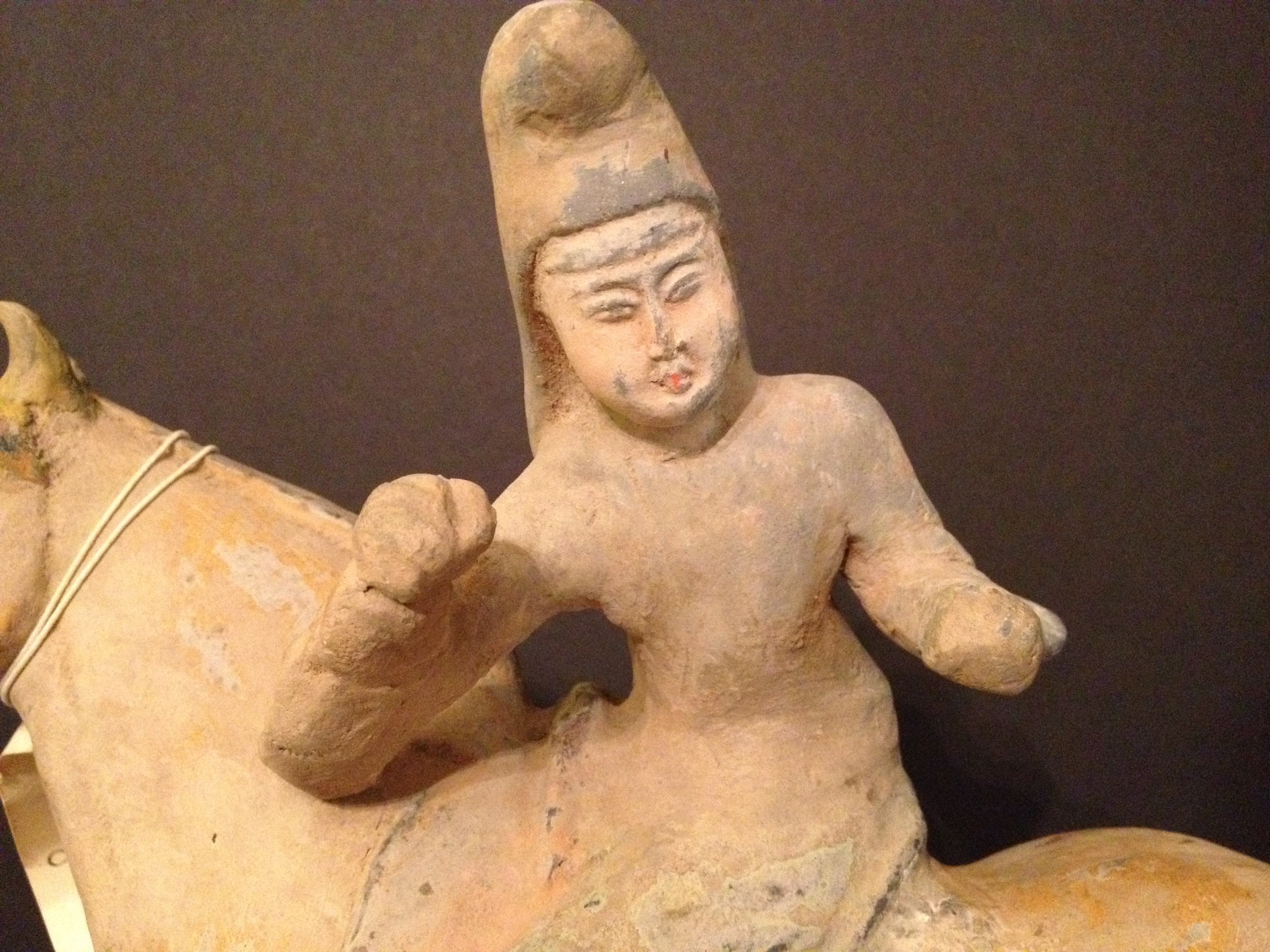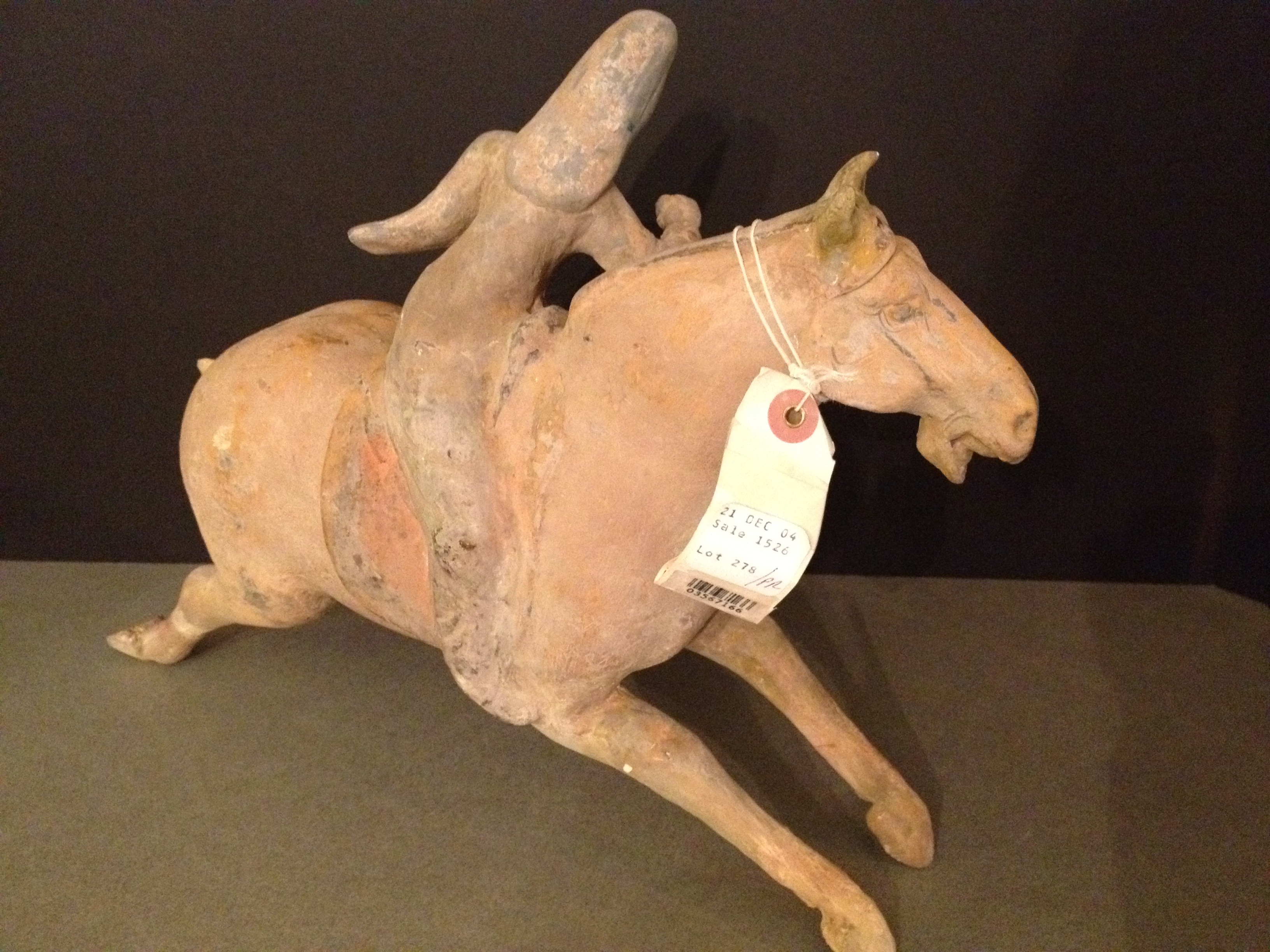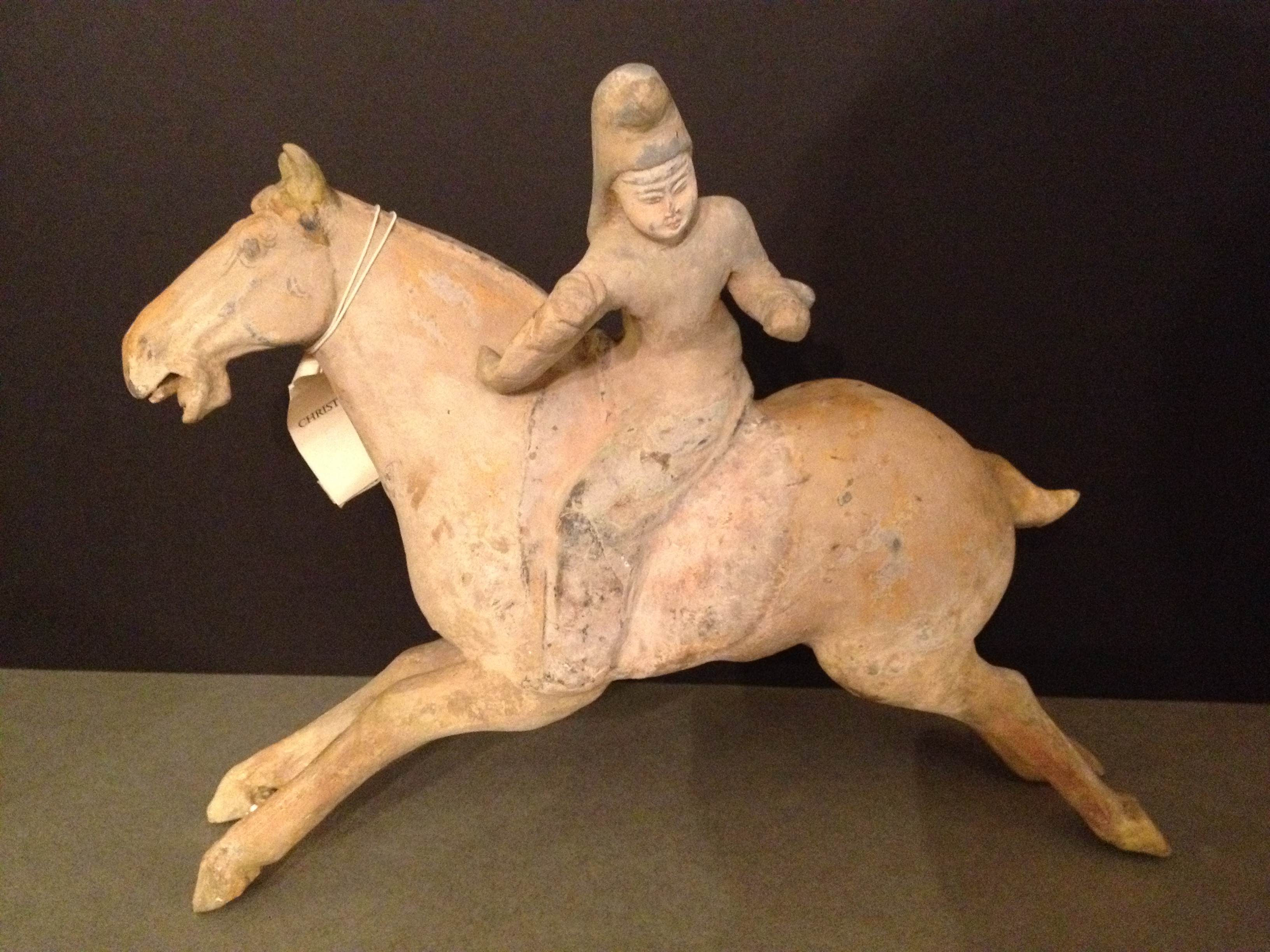 Important Tang Dynasty Pottery Lady Playing Polo. ex – Christie’s NY. No apparent repairs or damages. 35 cm long.