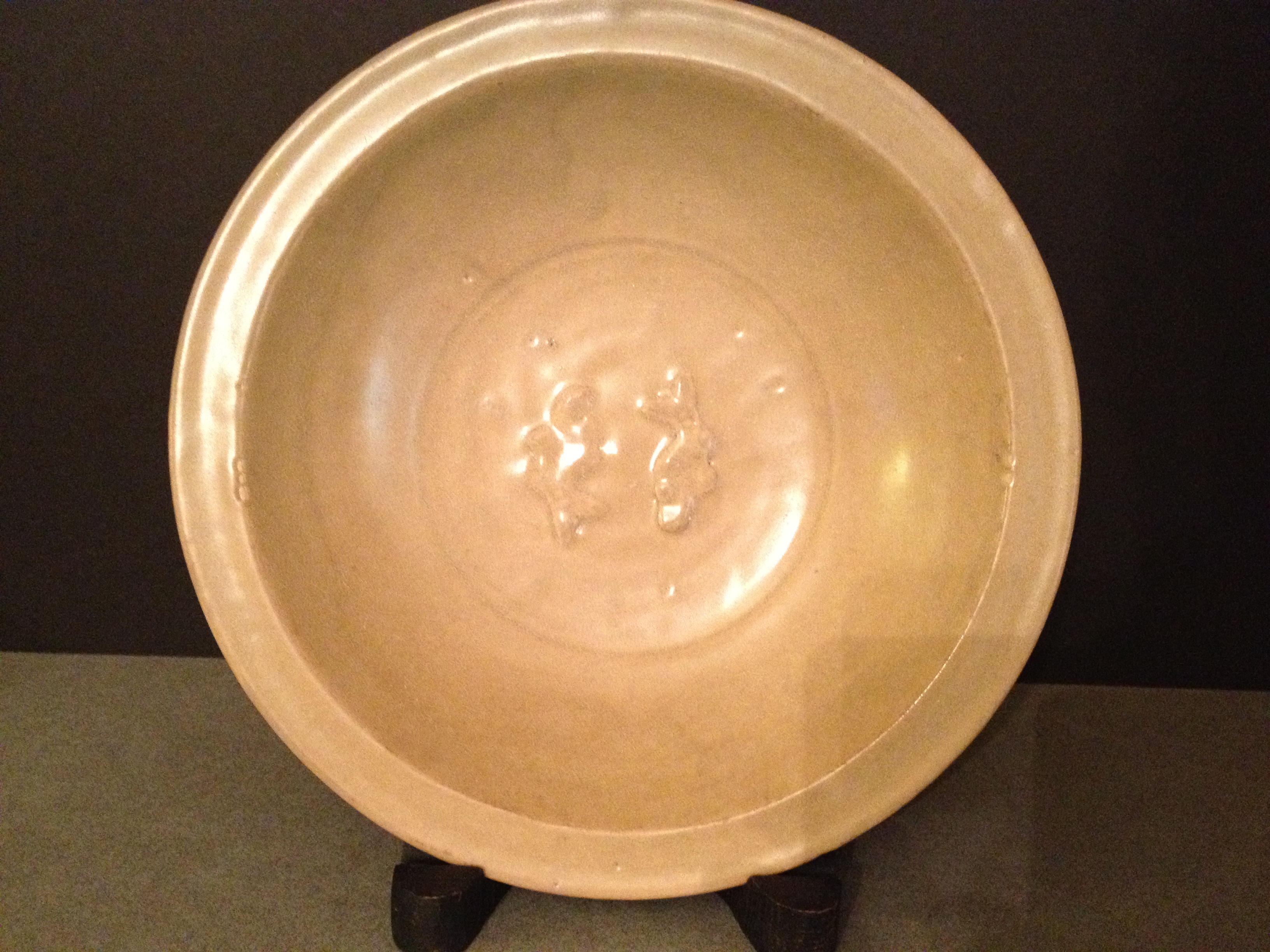 Rare Brown Celadon Glaze Chinese Southern Song Dynasty Longquan Porcelain Double Fish Bowl. The glaze is brown rather than green due to the firing temperature. 22 cm wide.