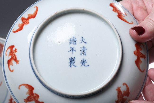 Iron Red and Blue & White decoration. Ex. Japanese Collection.